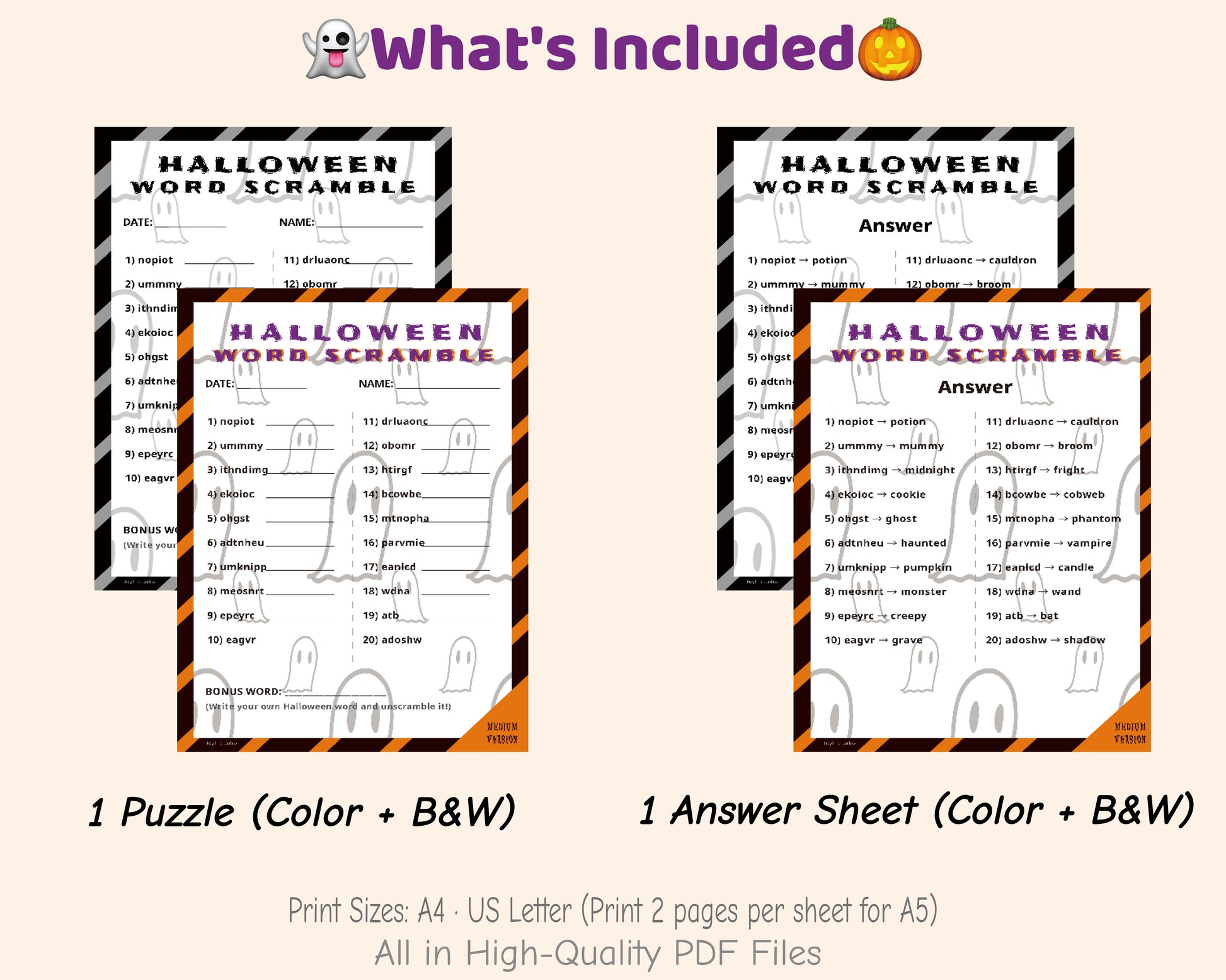 Perfect for parties, classrooms, or a cozy night at home, these puzzles are challenging but not too difficult β just the right level of spooky fun.